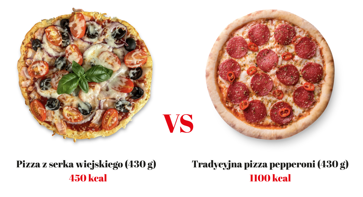 Nasza pizza to aż 34 g białka i o połowę mniej kalorii niż klasyczna.